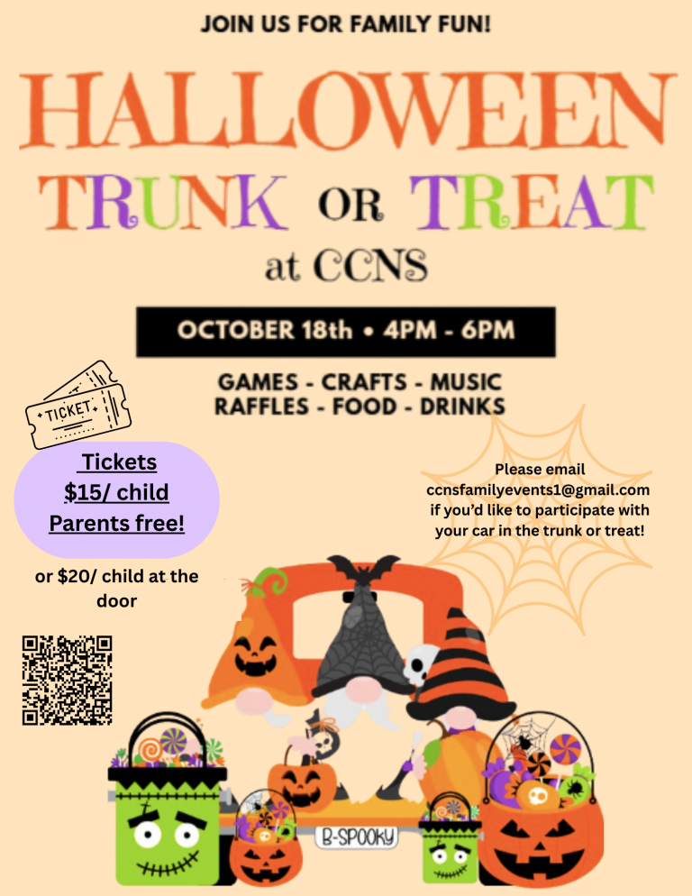Enjoy an afternoon of food, games, raffle prizes, and CCNS friends! Welcome the start of the school year and chillier temps with our fall outdoor carnival!